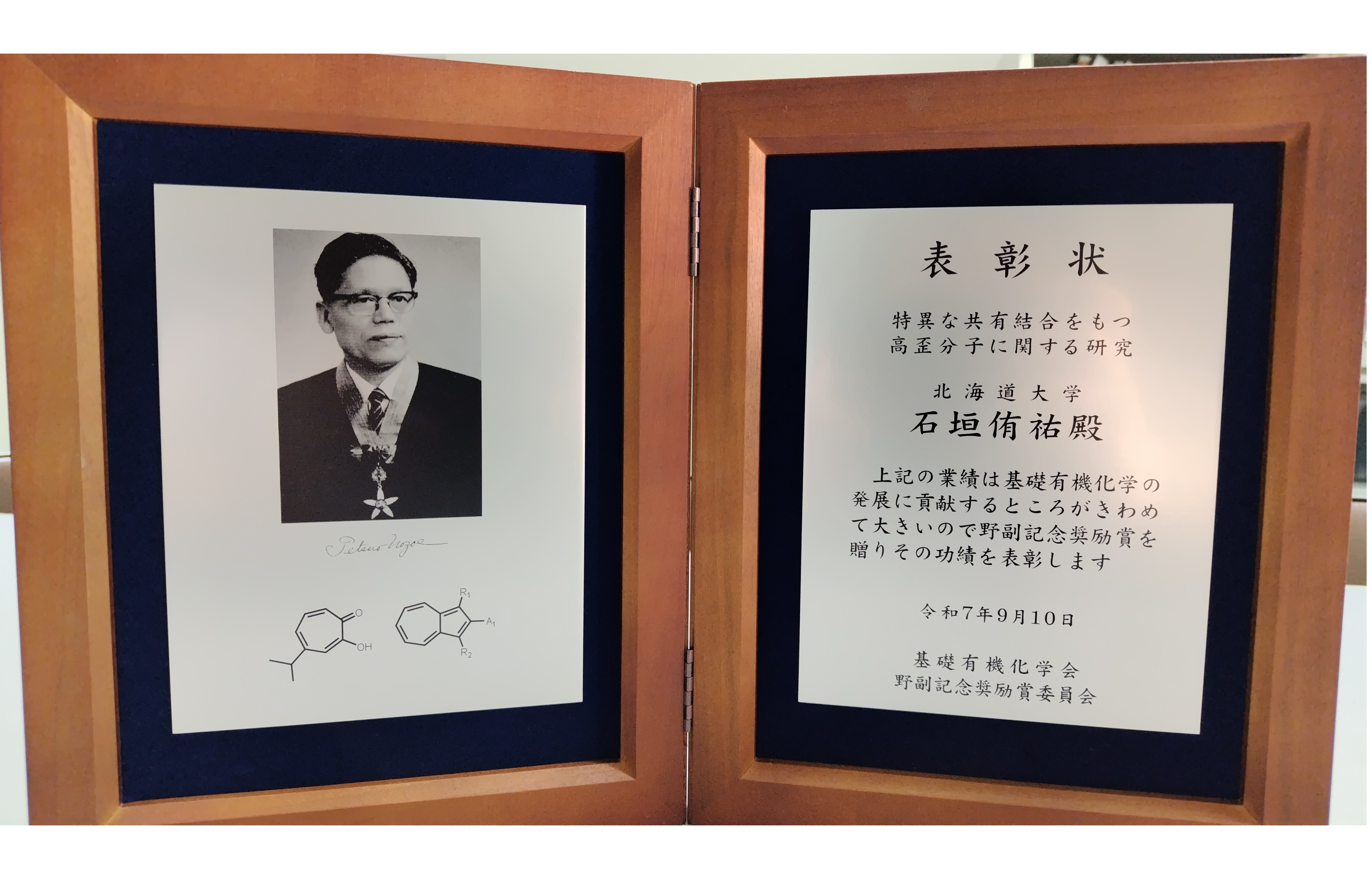 本賞は、構造有機化学、反応有機化学など基礎有機化学分野において顕著な研究業績をあげた若手研究者に贈呈されるものです。